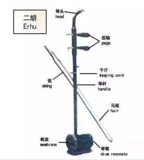 璐威:在中国,二胡也被称为“中国的小提琴”。这两种来自不同文化的乐器有许多相似之处。比如,这两种乐器都是拉弦乐器;它们在各自的音乐文化中都占有重要的地位。但是这两种乐器也有不同的地方:二胡没有指板,小提琴没有蟒皮(蛇皮);二胡的把位多,小提琴的弦多 (见下图)。这些种种相同和不同都使得对比这两种乐器充满了奇妙之处。而且双方的乐器,都有演奏过对方的乐曲;比如小提琴版的《二泉映月》,二胡版的《流浪者之歌》。但是单从颤音上来说,是不能单纯地说二胡的颤音数量比小提琴多的。