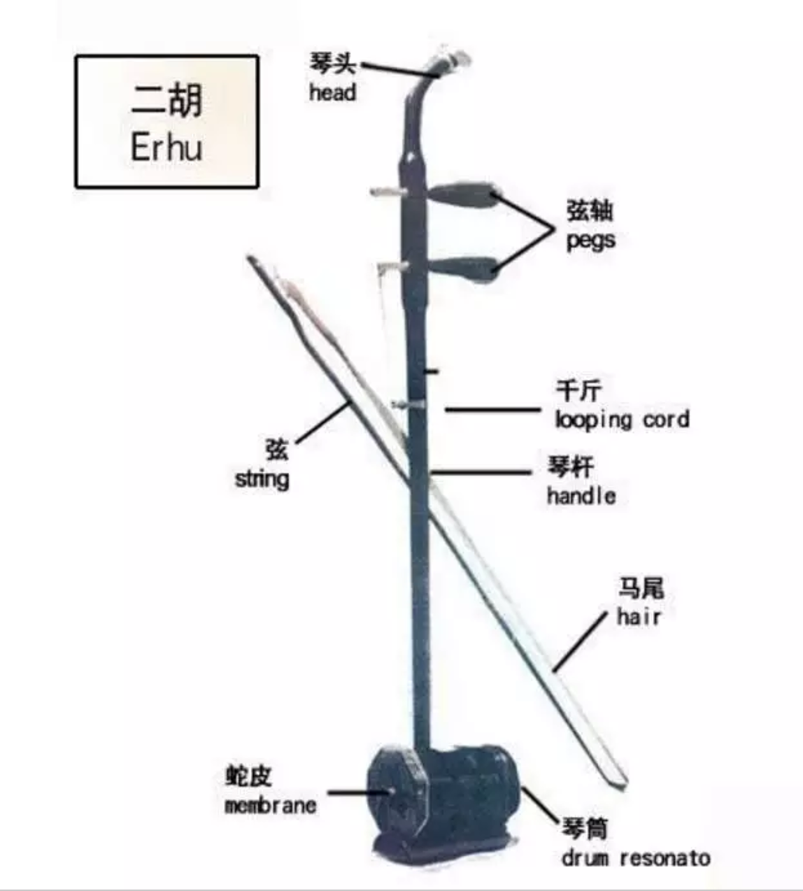 璐威:在中国,二胡也被称为“中国的小提琴”。这两种来自不同文化的乐器有许多相似之处。比如,这两种乐器都是拉弦乐器;它们在各自的音乐文化中都占有重要的地位。但是这两种乐器也有不同的地方:二胡没有指板,小提琴没有蟒皮(蛇皮);二胡的把位多,小提琴的弦多 (见下图)。这些种种相同和不同都使得对比这两种乐器充满了奇妙之处。而且双方的乐器,都有演奏过对方的乐曲;比如小提琴版的《二泉映月》,二胡版的《流浪者之歌》。但是单从颤音上来说,是不能单纯地说二胡的颤音数量比小提琴多的。